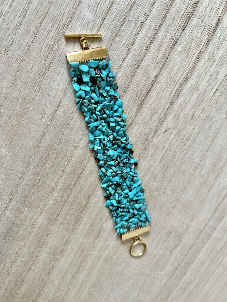El complemento perfecto para nuestro Choker Quartz. Este brazalete está hecho a mano con piedras de cuarzo natural montadas sobre una base de silicona flexible que se adapta cómodamente a tu muñeca. Moderno, cómodo y con mucha actitud, combina fuerza y diseño en una sola pieza.