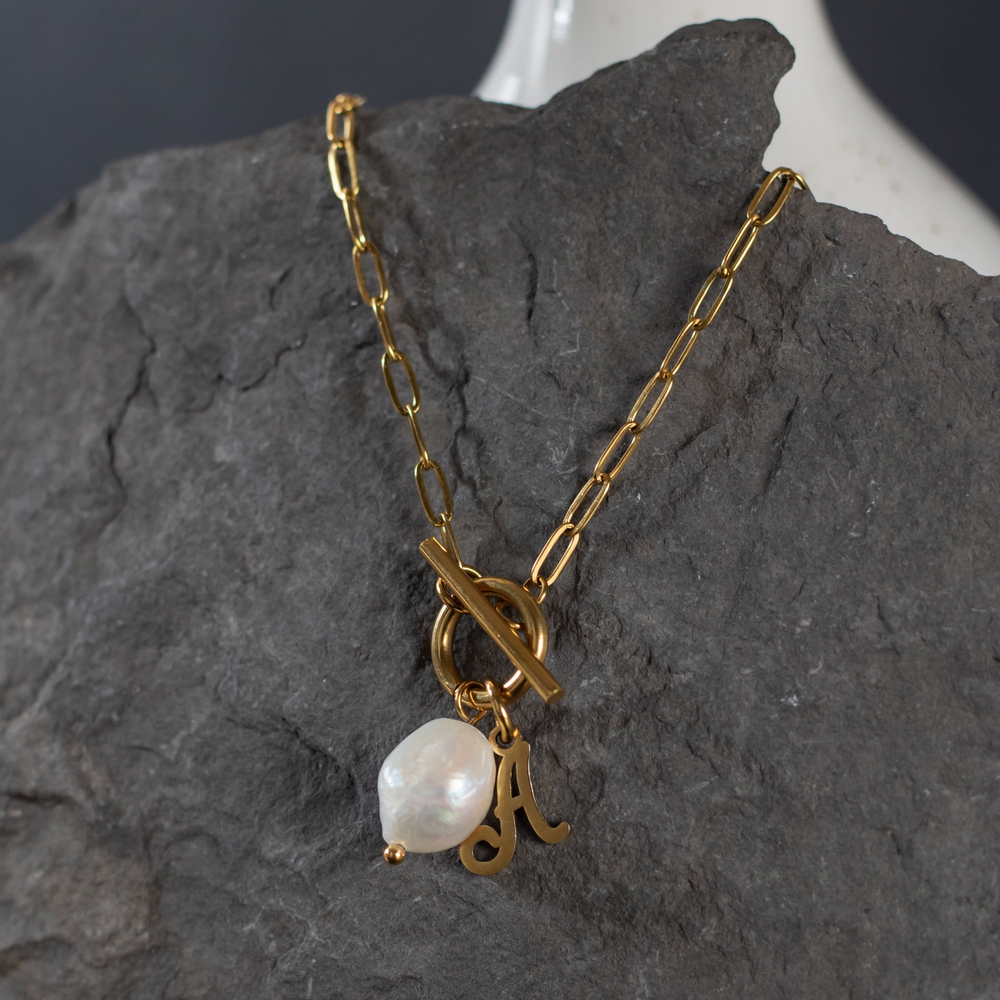 Como un susurro que descansa sobre la piel, este collar une la suavidad de una perla con la fuerza de una inicial que habla por ti.