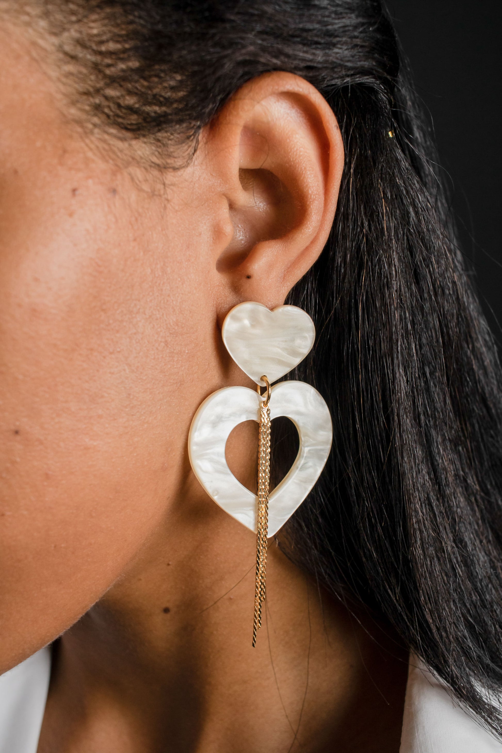 Estos pendientes de la colección Deluxe están elaborados en metacrilato con un sutil efecto mármol que los hace únicos y llamativos sin perder elegancia. De su base cae una pieza de mayor tamaño atravesada por una cadena de acero, aportando movimiento, luz y estilo.