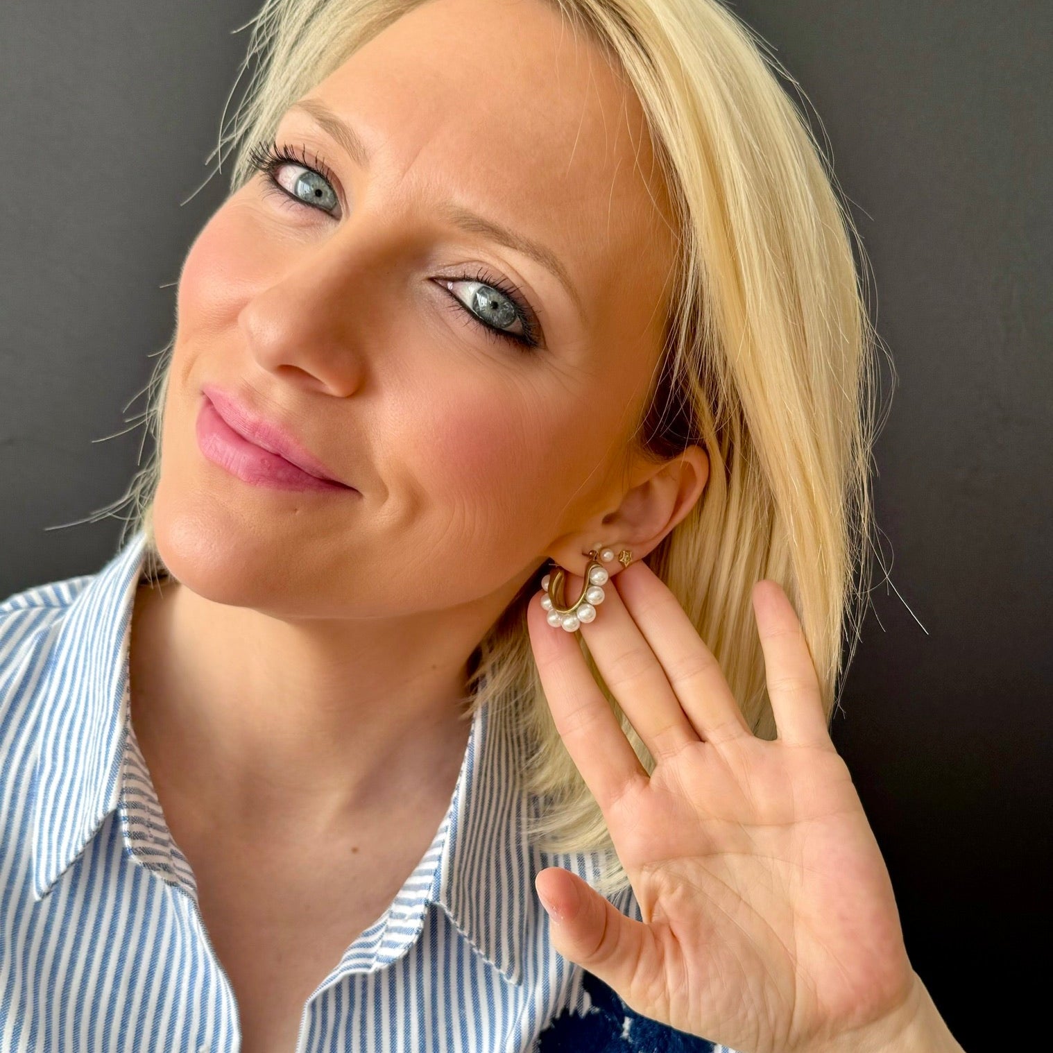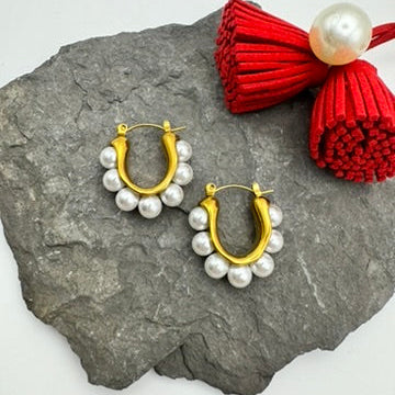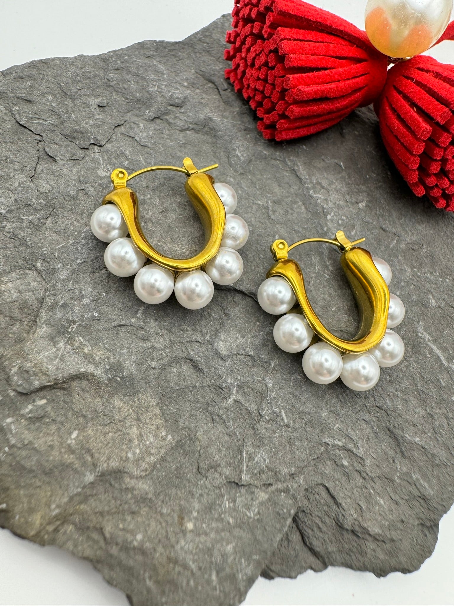 Diseño curvado y delicado, donde el acero se mezcla con perlas engarzadas que parecen flotar. Su tamaño medio es ideal: lo bastante discretos para el día a día, pero con ese algo especial que transforma cualquier look.