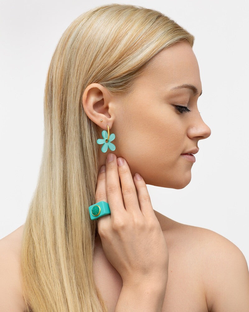 Los Pendientes Flor de Acetato están hechos para sacarte una sonrisa (¡y unas cuantas miradas también!). Con un diseño alegre y divertido, estas flores ligerísimas se convierten en el complemento perfecto para darle un toque de color a tu día, ya sea en el trabajo, de paseo o en pleno verano bajo el sol.