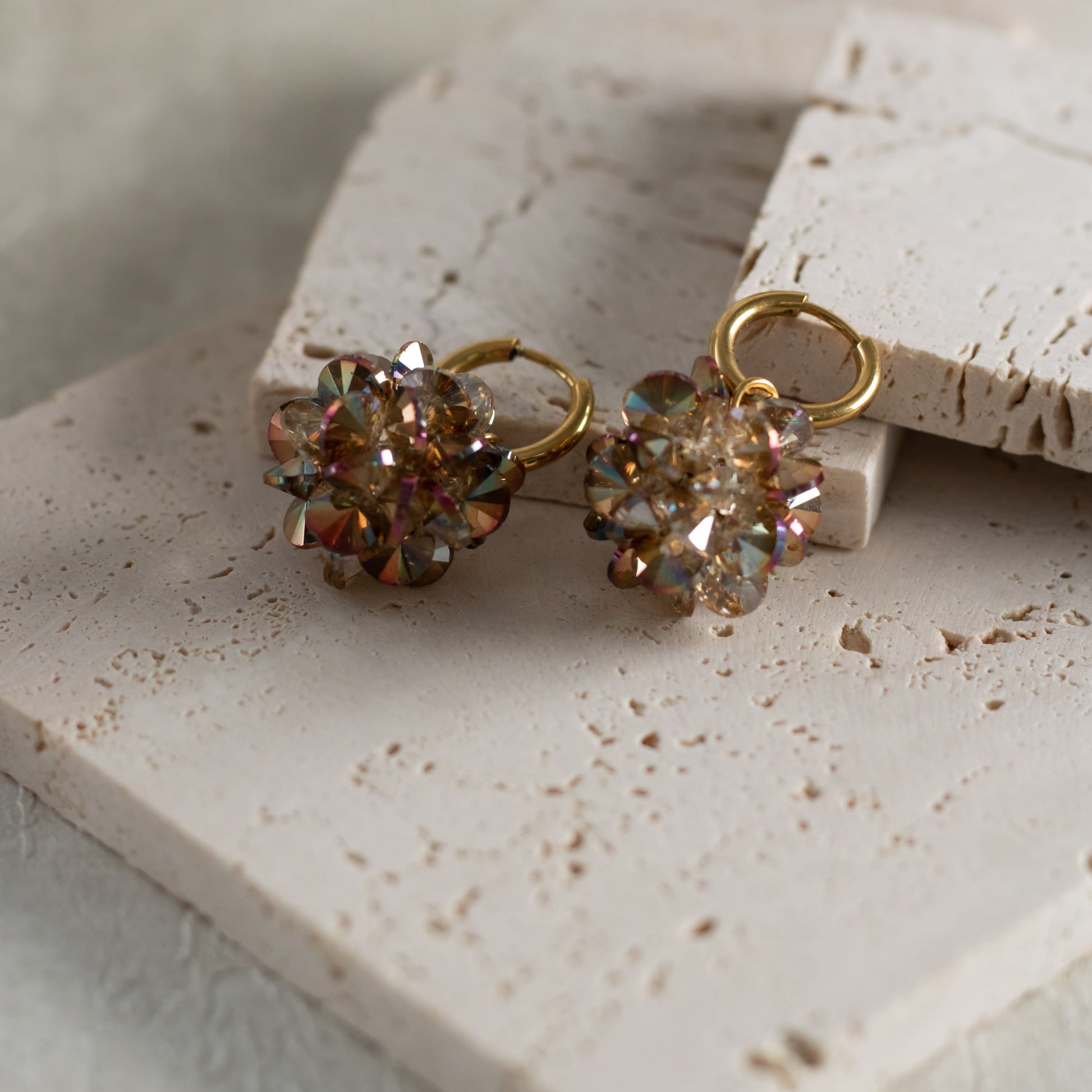 Hechos con cristal de strass y aros de acero hipoalergénico. Disponibles en cinco colores muy favorecedores y elegantes. Su brillo sutil realza tu belleza natural sin esfuerzo.