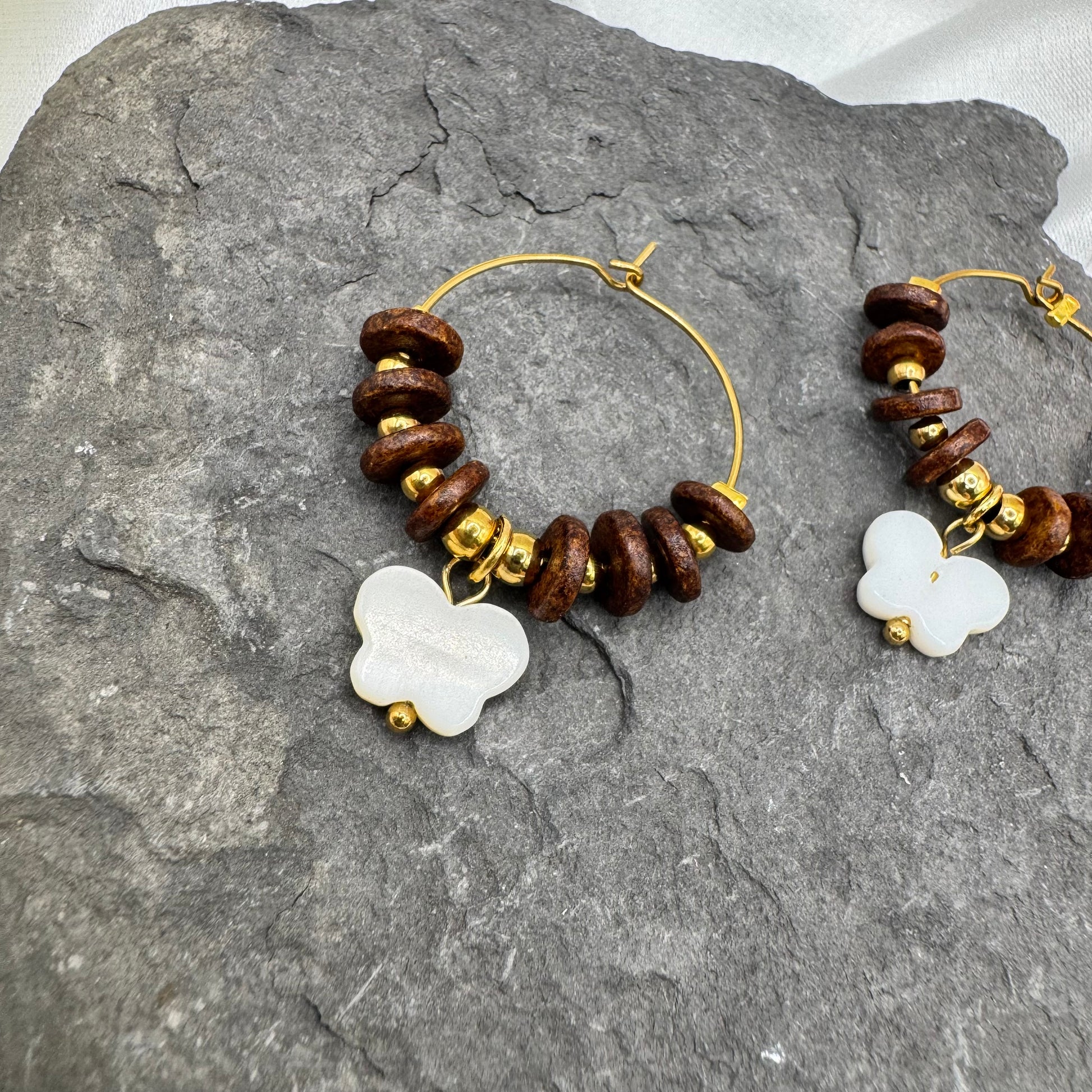 Descubre la magia de Romantik Butterfly, unos pendientes diseñados para mujeres que creen en los pequeños detalles que lo cambian todo. Sus aros medianos se combinan con discos de cerámica en tonos chocolate (el color de moda que evoca calidez y sofisticación) que aportan un aire único y artesanal. En el centro, la delicada mariposa de nácar flota con luz propia, simbolizando transformación, libertad y belleza atemporal.