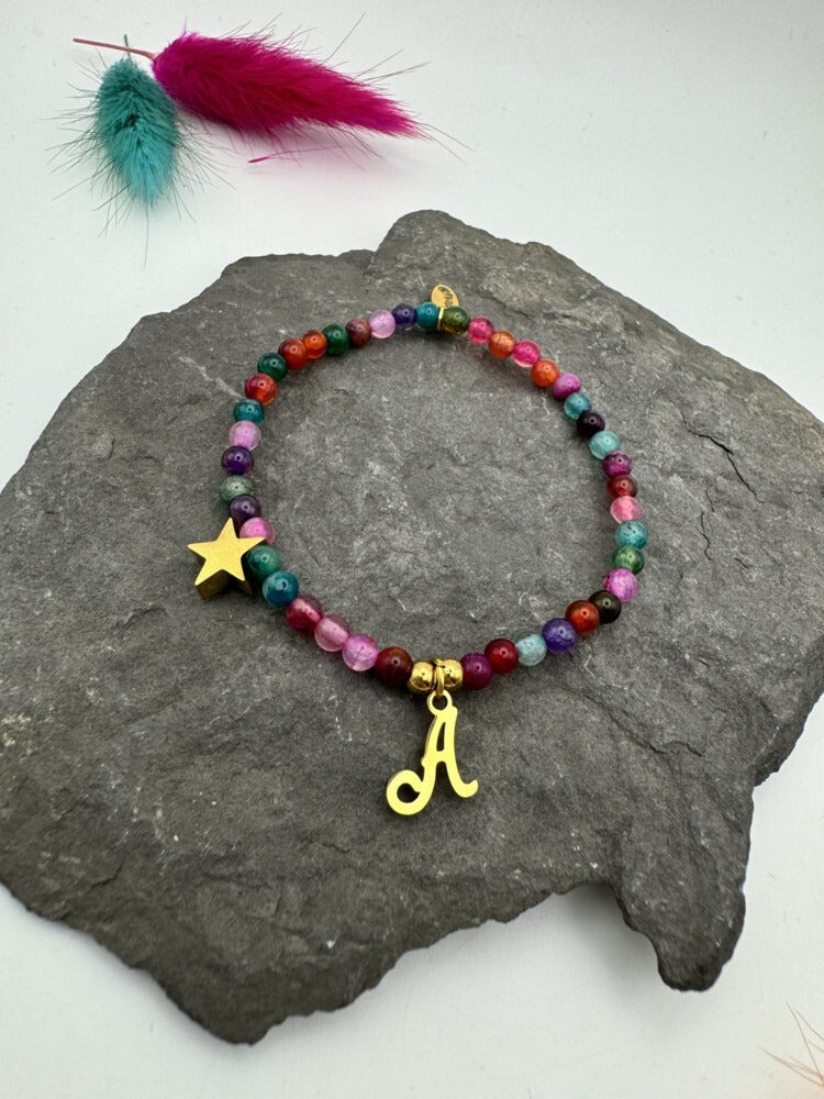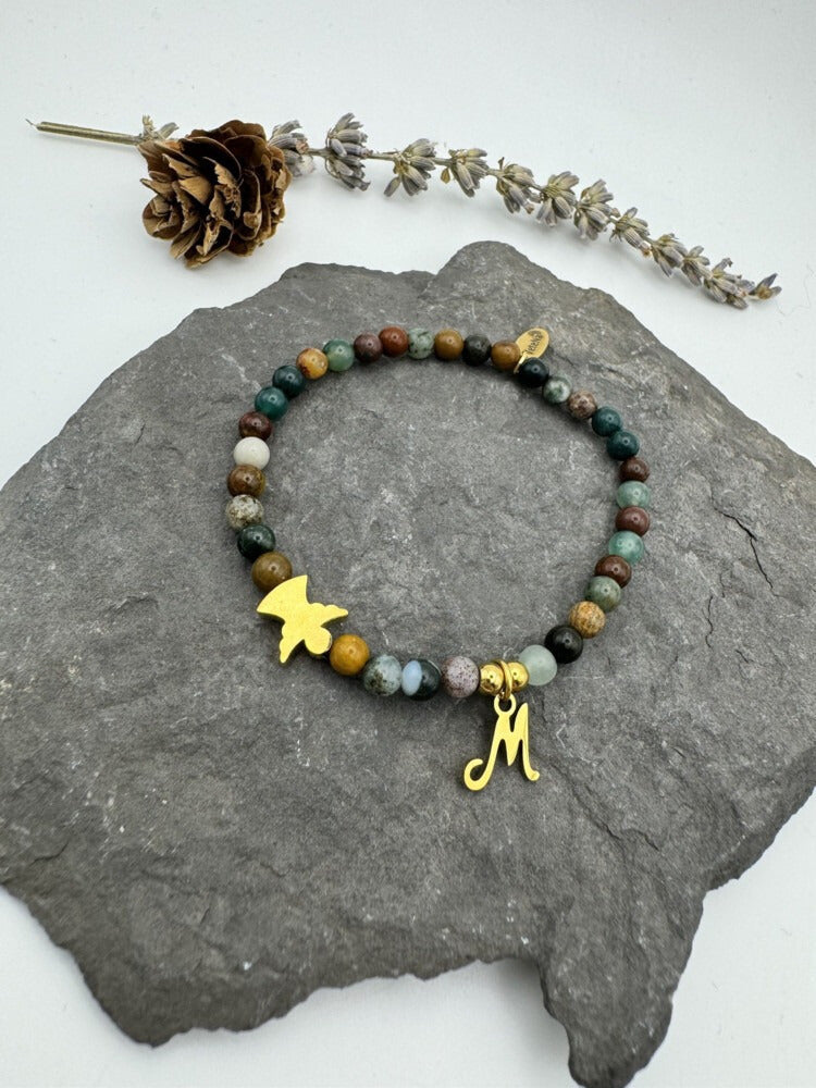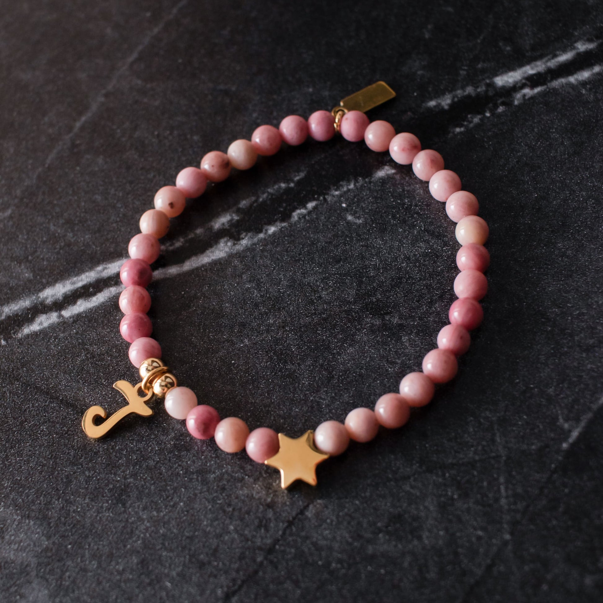 Realizada con piedras semipreciosas cuidadosamente seleccionadas, cada pieza es única, como el vínculo que representa. Puedes personalizarla con la inicial que elijas y un símbolo que refleje lo que sientes: un ángel, una estrella o un corazón. Pequeños detalles que dicen mucho sin necesidad de decirlo todo.