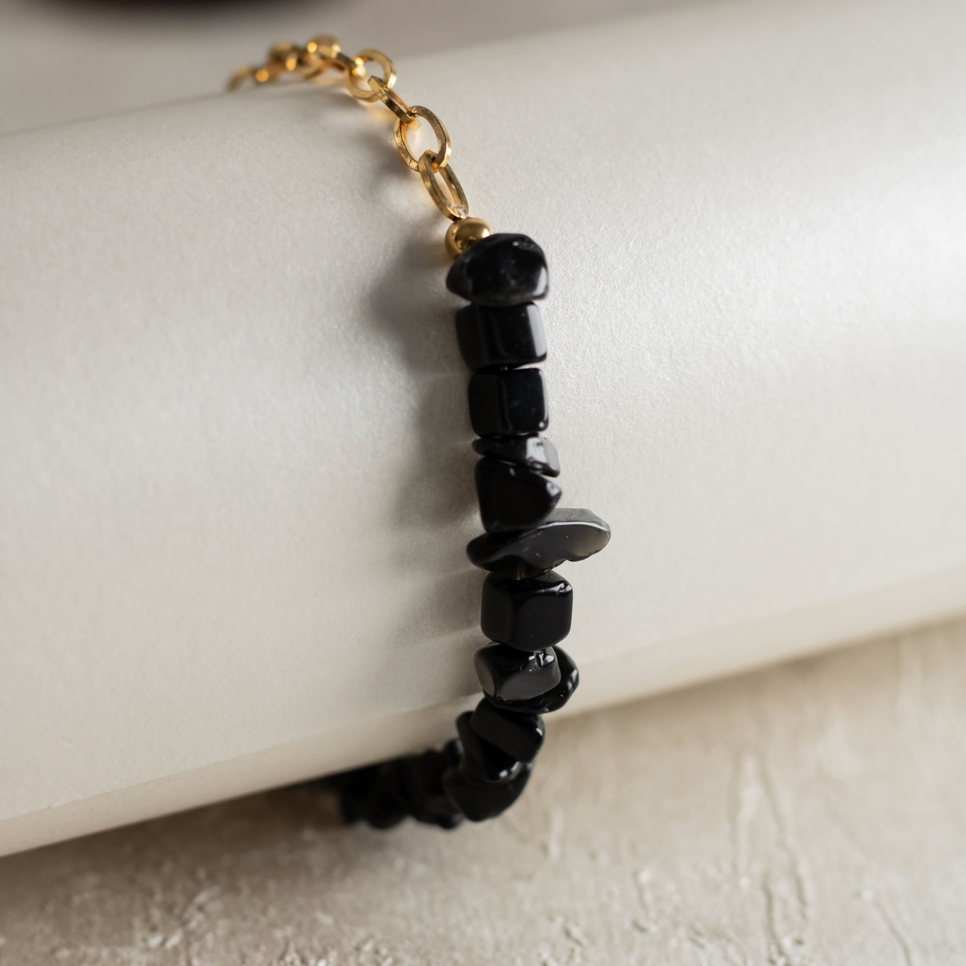 La Pulsera Dualita fusiona dos mundos en una sola pieza: la sofisticación de la cadena de acero con baño en oro y la energía pura de las piedras naturales. Su diseño mitad cadena, mitad piedra, crea un contraste armonioso que aporta estilo, presencia y simbolismo a cualquier look.